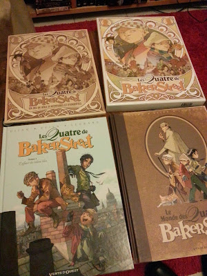 Rouen. En plus d'être une magnifique bande dessinée sur les Irregulars de Sherlock Holmes, les deux dernières sorties des Quatre de Baker Street, la série de Vent d'Ouest, sont un petit délice pour l'imaginaire et ceux qui adorent l'univers victorien. Non seulement le Monde des Quatre de Baker Street est un voyage dans les coulisses de la bande dessinée et donnera envie à tous de lire du Conan Doyle, mais un coffret avec le tome 1 et le fameux "Monde " est disponible. Cerise sur le gâteau, un jeu de rôle entièrement jouable est inclus dans ce coffret. Ideal pour faire jouer les plus jeunes, c'est une porte ouverte sur des heures d'évasion qui s'offre aux amateurs de ce monde extraordinaire. Et qui donne envie d'avoir quelques années de moins..